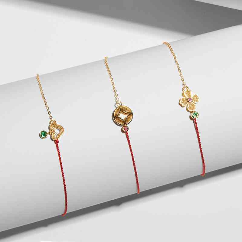 TOP1:歡璽如意18K金寶石手鏈 開運紅繩 手工非遺花絲鑲嵌