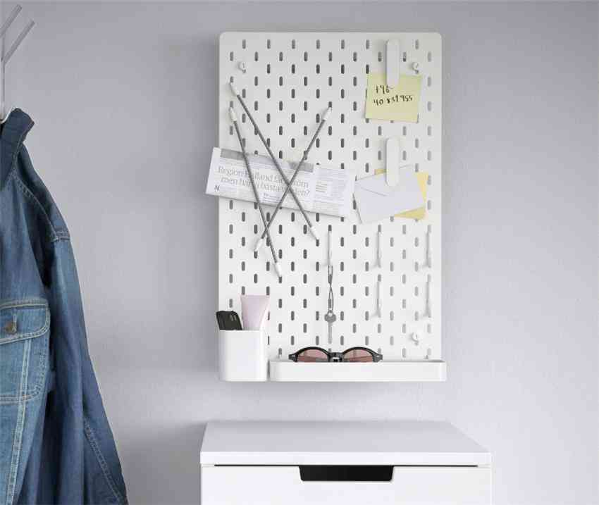 洞洞板也是這幾年比較火的收納用品,當(dāng)然宜家也有得賣,我個人比較喜歡的一點是齊全的配件,像什么隔板架、掛鉤、收納盒、彈力繩等配件都可以根據(jù)需求選用,讓家居收納更顯整潔。
