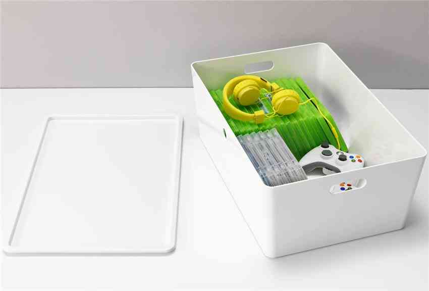 這種收納盒印象中有四五種尺寸,基本上都是這種帶蓋子的簡約純色設(shè)計,材質(zhì)方面是那種聚合物的,還算比較堅固,而且可以堆疊收納。