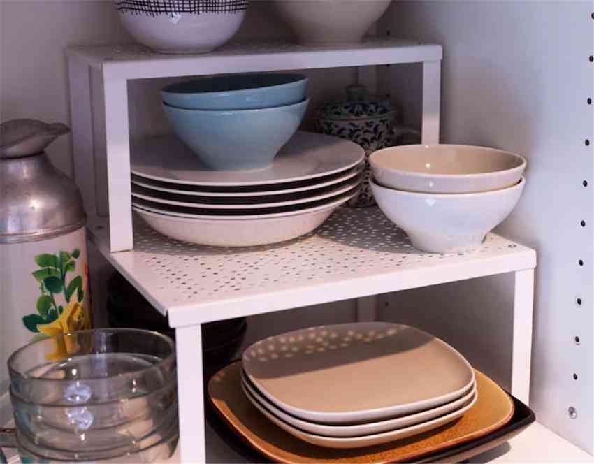 這種白色的小隔板,一般都是用來解決廚房櫥柜內(nèi)收納空間不足的問題,它能有效分隔柜內(nèi)上下層空間,讓餐具收納空間變得更加寬裕。