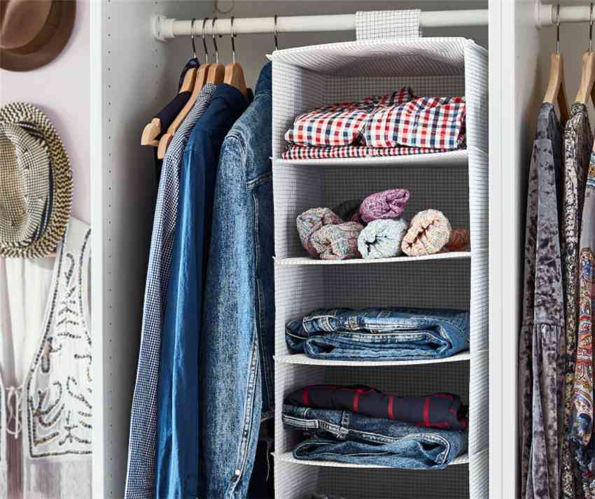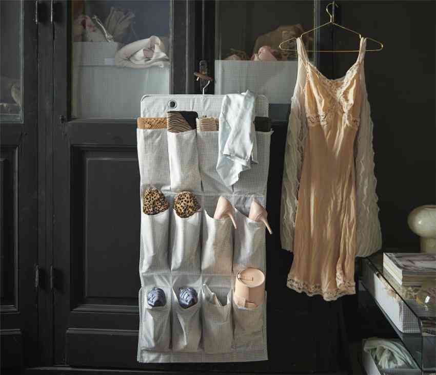 這個掛袋沒什么好說的,一般就是搭配吊衣桿使用,來分隔衣柜內(nèi)的收納空間,收納一些襪子、內(nèi)衣、帽子、圍巾之類的小件衣物很合適,當(dāng)然用來收納鞋子也完全沒問題。