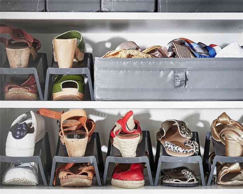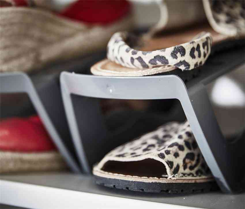 這種鞋架現(xiàn)在也很常見,差不多就是為了利用好縱向空間,將鞋子分上下層擺放,這樣原本緊湊的鞋柜差不多就可以實現(xiàn)“空間翻倍”了。