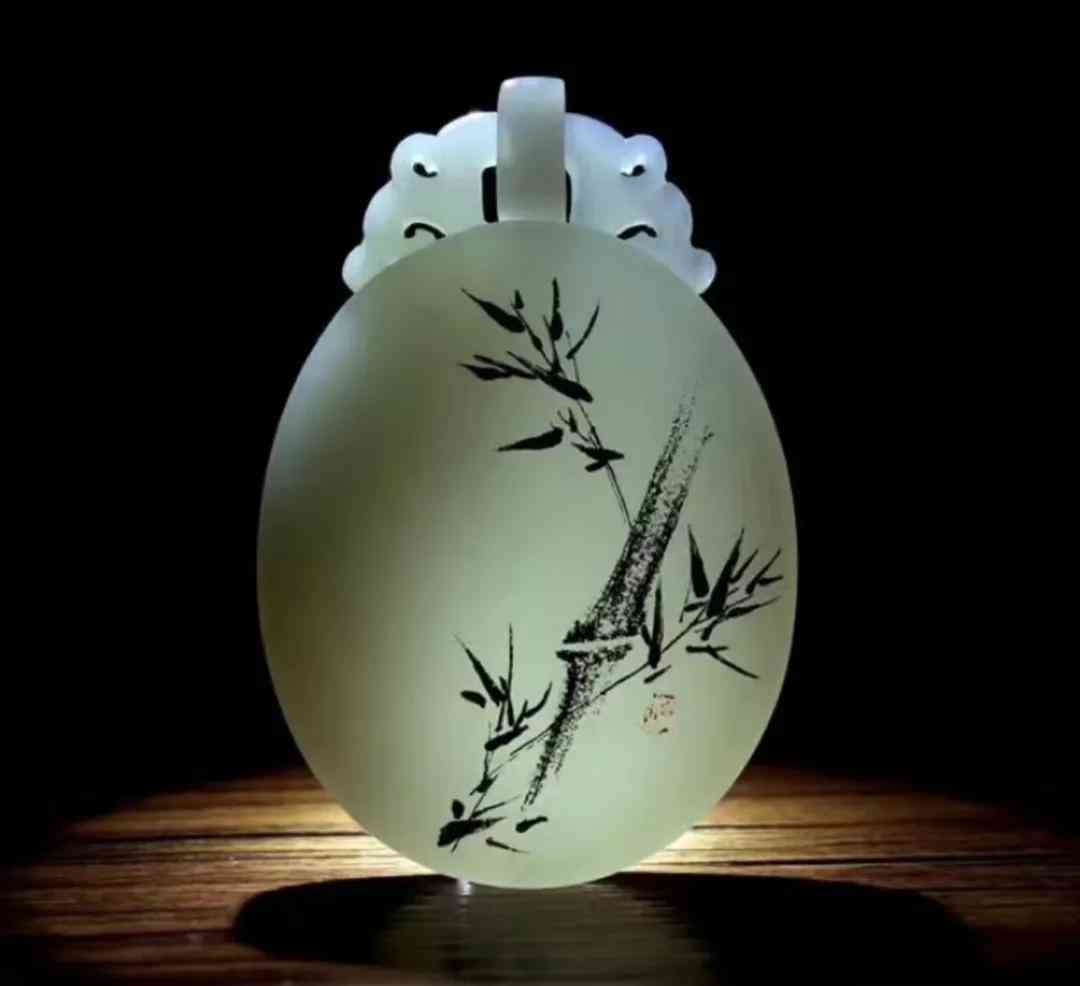 手指置于成品玉器后打光,也可用手機(jī)電筒,呈模模糊糊半透明。