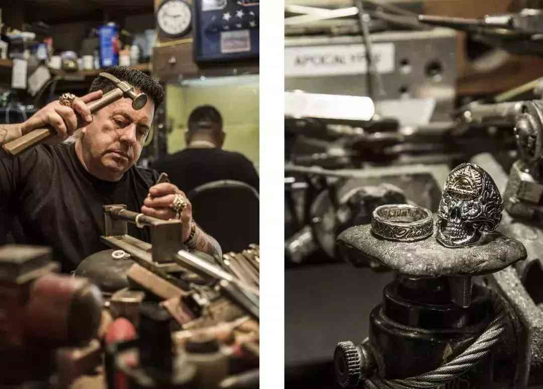 除了制作皮衣之外,重型機車發(fā)燒友的他開始將貴金屬加裝在皮衣上,例如酷勁又陽剛的骷髏頭圖案,于是一頭栽進金屬研制和銀器的制作,打開了一定的知名度。