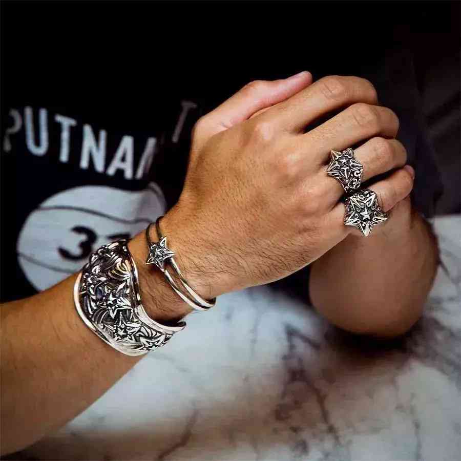 導讀: 在大部分男性配飾界,銀器可謂是“常見客”,深沉的衣著色調(diào)一貫是男士們的,而銀飾的加襯可謂是不可或缺的點睛之筆。從戒指...