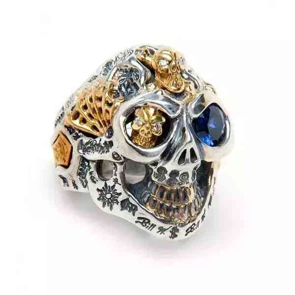 Bill Wall也很熱衷于將寶石鑲嵌其中,通常不同月份就會嵌入不同月份之寶石,十分考究。其最特別就是骷髏的寶石眼,靠冷打把寶石擠進眼眶,需要非常大的力氣和精準度。