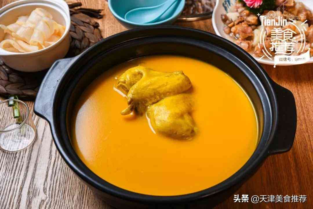 招牌濃湯花膠雞鍋底原料均為選用精品上等品質(zhì)山養(yǎng)黃油老雞、金華火腿、土豬筒骨扇骨、深?,幹⑹萑?#8230;文火熬制10小時(shí)以上!才有了極為鮮美的這樣金燦燦的湯底。