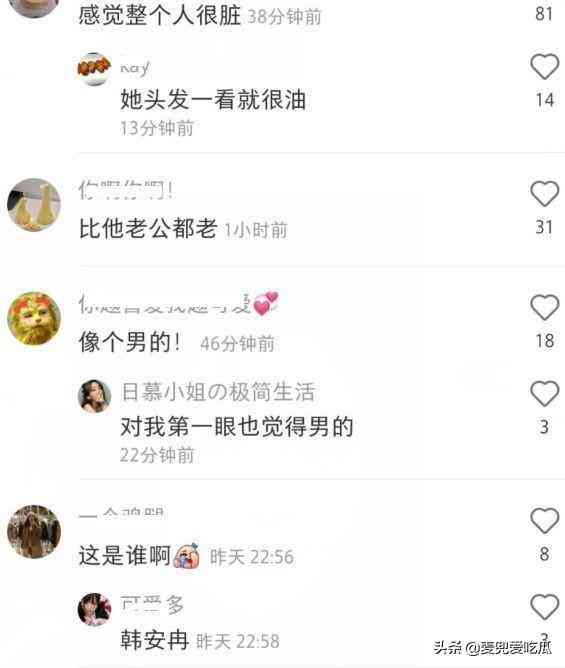 看到韓安冉的狀態(tài)后,網友紛紛開始了吐槽模式,有人稱,感覺整個人很臟,頭發(fā)非常油膩。眼看上去像個男人,還有人表示,完全沒認出來。