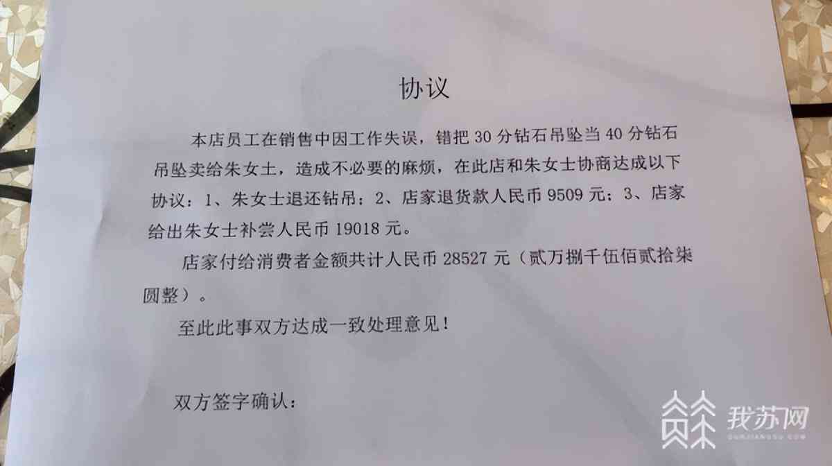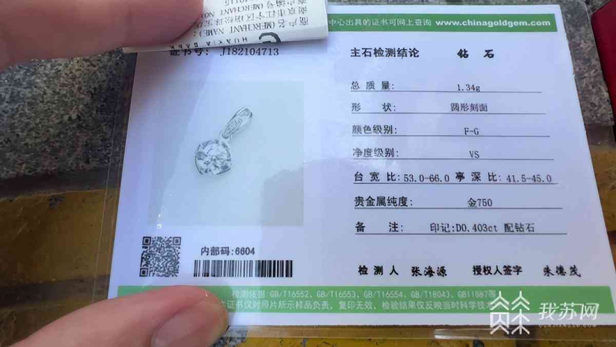 女子買0.4克拉鉆石吊墜 商家卻給了0.3克拉的