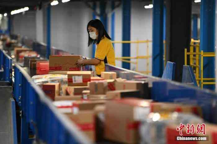 物流工人對(duì)網(wǎng)上下單的商品進(jìn)行分揀、裝車。 中新社記者 崔楠 攝