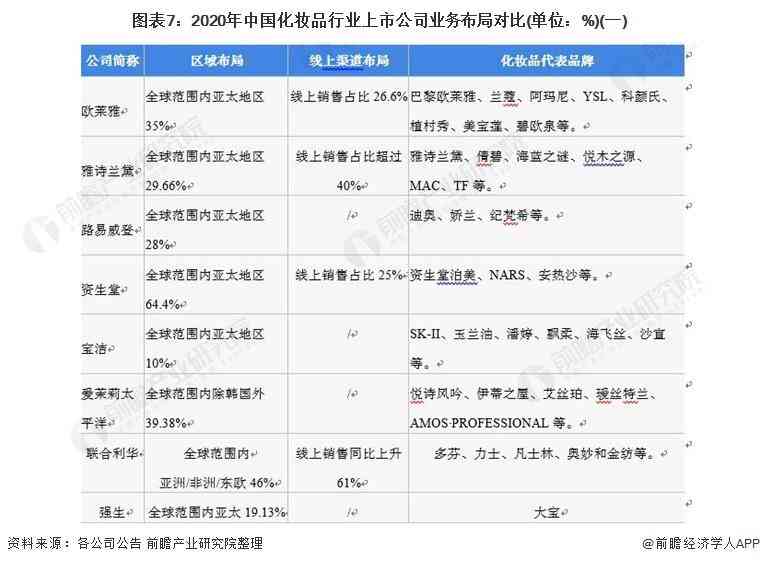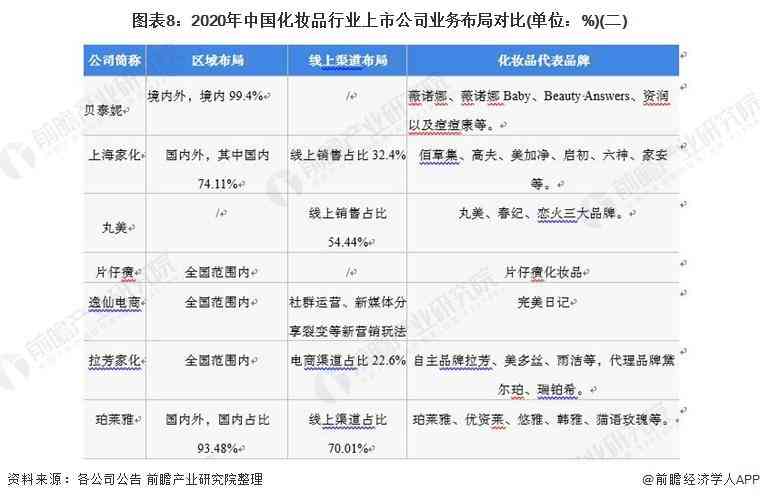 2、化妝品行業(yè)上市公司業(yè)務(wù)布局對比