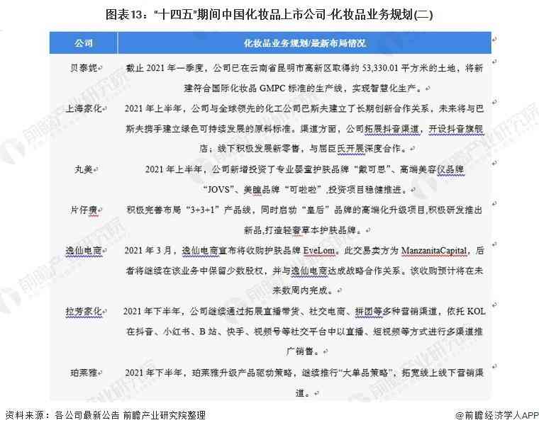 4、化妝品行業(yè)上市公司化妝品業(yè)務(wù)規(guī)劃對比