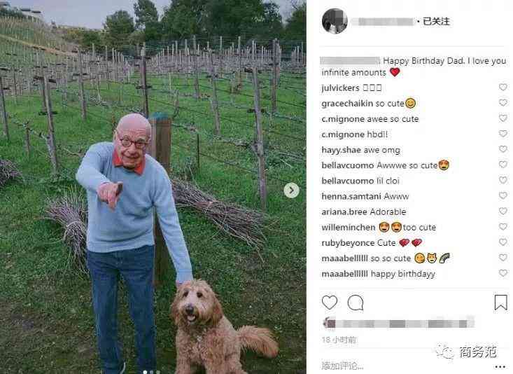 每年默多克過(guò)生日,或是父親節(jié),姐妹倆都會(huì)定點(diǎn)發(fā)祝福。比如會(huì)配上一張默多克的照片,以及"爸爸生日快樂,愛你無(wú)限量”的配文。