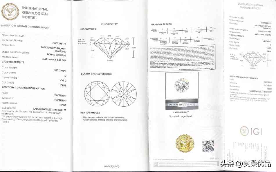 大概了解培育鉆石的人都知道,和天然鉆石一樣,培育鉆石也有自己的證書,IGI和GIA這是權威的鑒定中心,對培育鉆石和天然鉆石都有清楚說明。都知道區(qū)分鉆石的好壞是和等級的(4C):鉆石純度、鉆石克拉、鉆石顏色和鉆石切割。