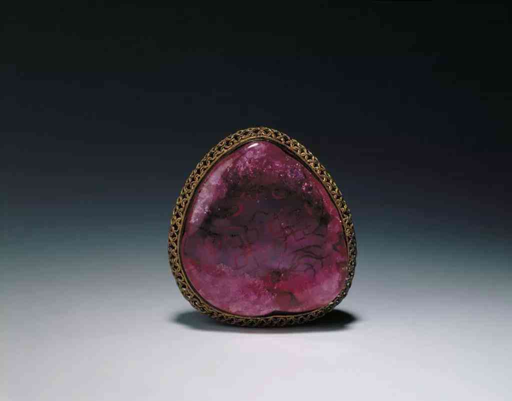 北京故宮珍寶館數(shù)百件奇珍異寶中有一枚碩大的桃紅色碧璽帶扣稱之為清代碧璽中極品,帶扣為銀累絲托上嵌粉紅色碧璽制成,此碧璽透明且體積碩大局部有棉綹紋,碧璽中當屬透明且桃紅為珍品,在清朝時期更顯珍貴。