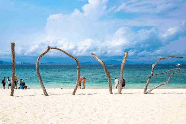 蜈支洲島 上處處都能看到愛情元素,除了這個LOVE之外,旁邊還有KISS等各種樹干組成的英文單詞。這也是婚紗攝影們最喜歡的地方,大家可以等著他們拍之時學(xué)習(xí)如何找角度,拍出來的照片會更好看一些。