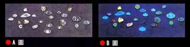 是指鉆石在紫外熒光燈下