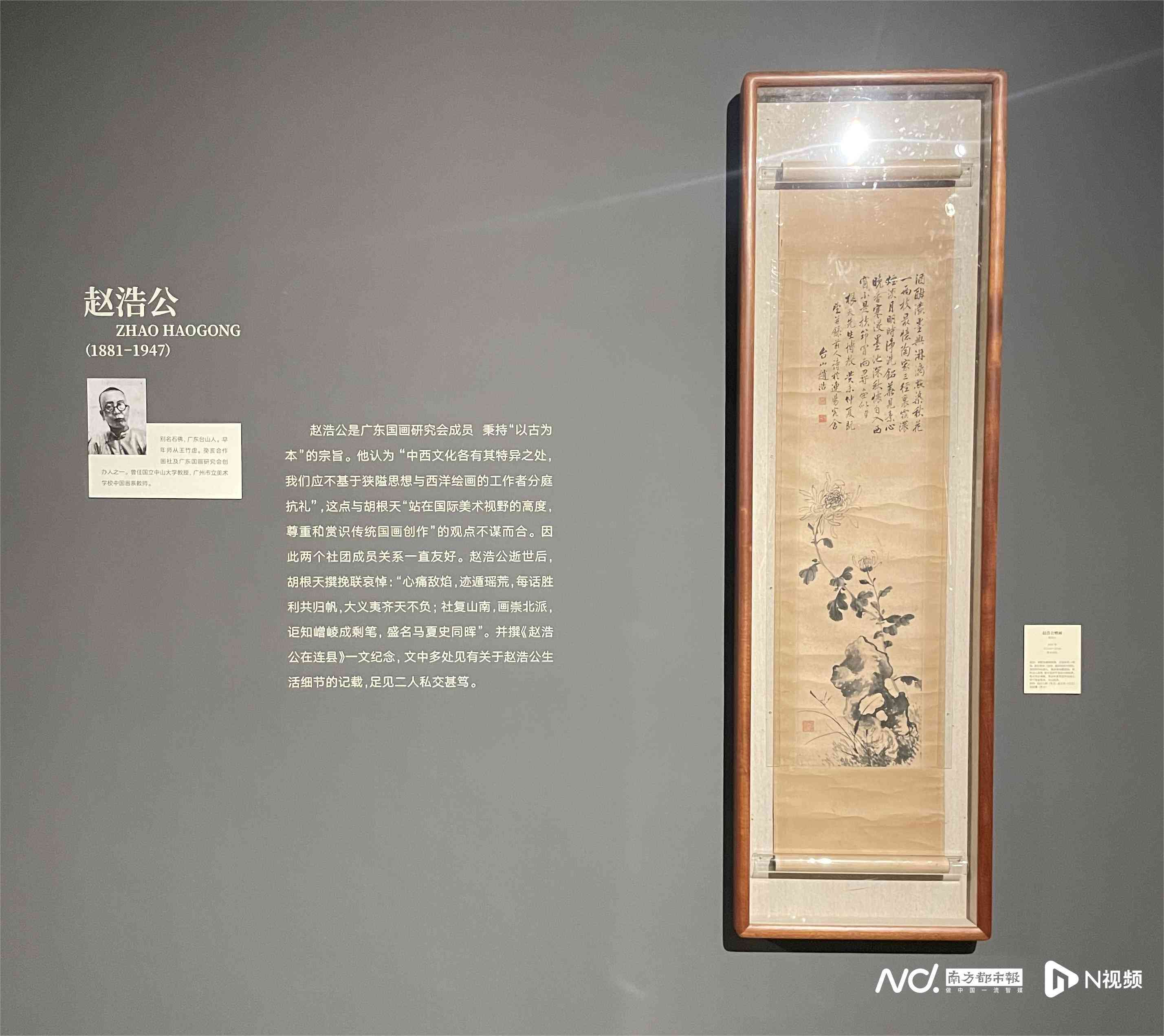 趙浩公是廣東國畫研究會成員,秉持“以古為本”的宗旨。他認為“中西文化各有其特異之處,我們應不基于狹隘思想與西洋繪畫的工作者分庭抗禮”,這點與胡根天“站在國際美術視野的高度,尊重和賞識傳統(tǒng)國畫創(chuàng)作”的觀點不謀而合。因此兩會成員關系一直友好。趙浩公逝世后,胡根天撰挽聯(lián)哀悼:“心痛敵焰,跡遁瑤荒,每話勝利共歸帆,大義夷齊天不負;社復山南,畫崇北派,詎知嶒崚成剩筆,盛名馬夏史同暉。”并撰《趙浩公在連縣》一文紀念,文中多處見有關于趙浩公生活細節(jié)的記載,足見二人私交甚篤。