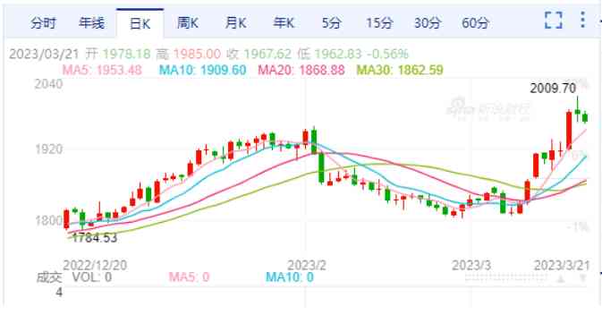 近期,硅谷銀行、簽名銀行、瑞士信貸等歐美多家銀行遭遇流動性危機,市場避險情緒不斷升溫,國際金價在3月20日實破2000美元大關,較歷史最高價僅相差3%。2020年8月,黃金價格曾達到2074.71美元/盎司。