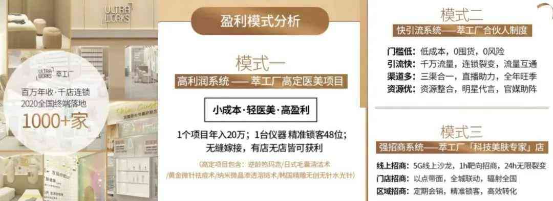 據(jù)杭州康又美相關(guān)工作人員介紹,“萃工廠”品牌的代理模式為“門店+移動美容師”(即“線下+線上”)。對于線下門店來說,消費者投資約69800元即可開設(shè)一家萃工廠線下門店,推薦一個新店能獲得部分現(xiàn)金獎勵。他介紹到,“線下門店以經(jīng)營自有品牌萃工廠以及提供面部護理等項目為主營業(yè)務(wù)。目前,萃工廠在全國各地的門店已超過850家。”