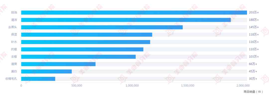“清潔”也是男性消費者的主要需求,而且他們對于清潔的效果有著比較高的要求,相對于女性消費者,男性消費者更在意潔面產(chǎn)品的“去黑頭”“抗痘”“去痘”的能力,“美白”功效也進入前10。