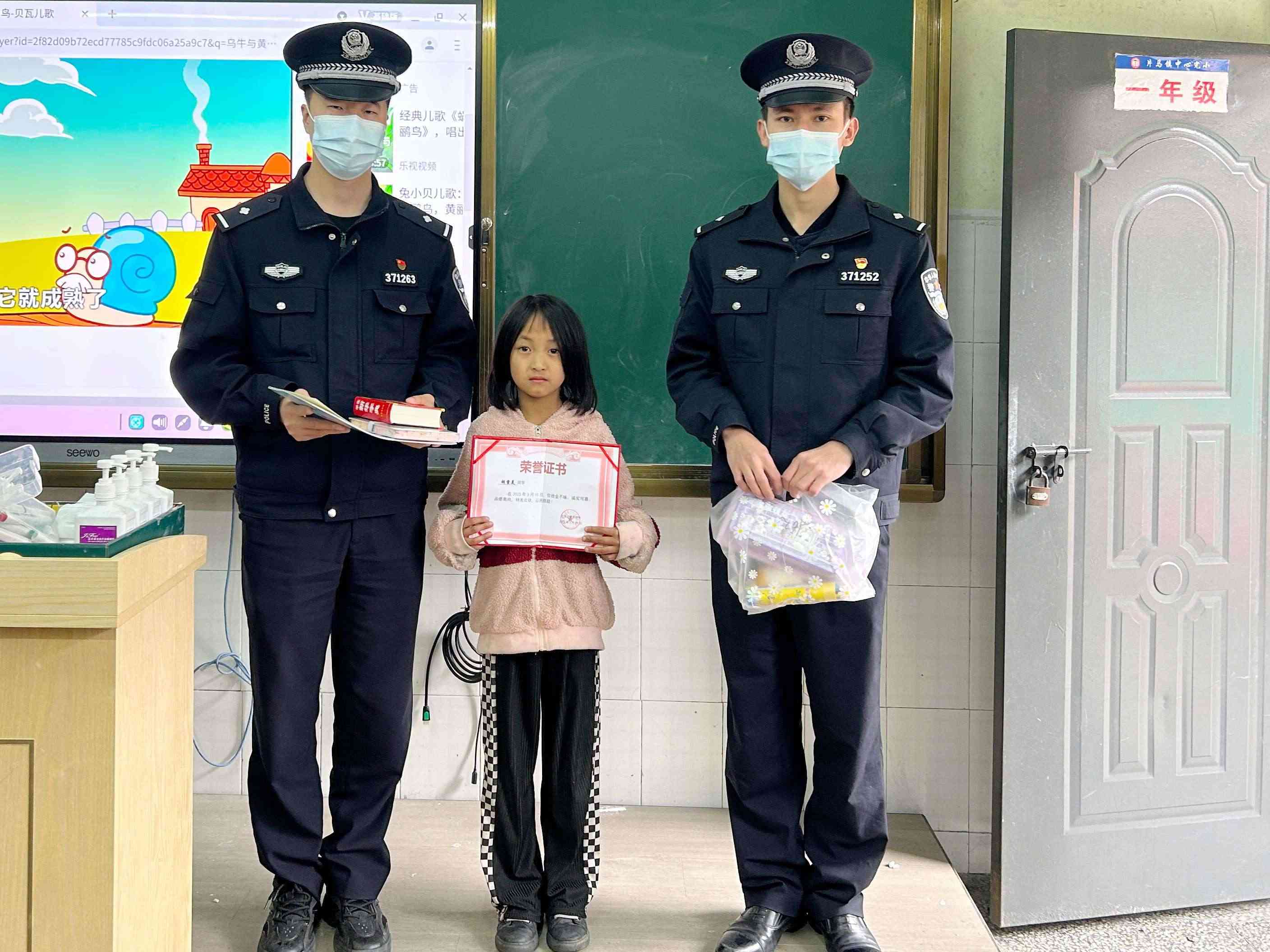 3月20日,民警特地制作了“拾金不昧”的榮譽(yù)證書(shū),購(gòu)買(mǎi)了新華字典、彩繪筆、文具盒等文具用品,到學(xué)校對(duì)胡雪美進(jìn)行嘉獎(jiǎng),號(hào)召其他同學(xué)向她學(xué)習(xí),儀式感滿(mǎn)滿(mǎn)。