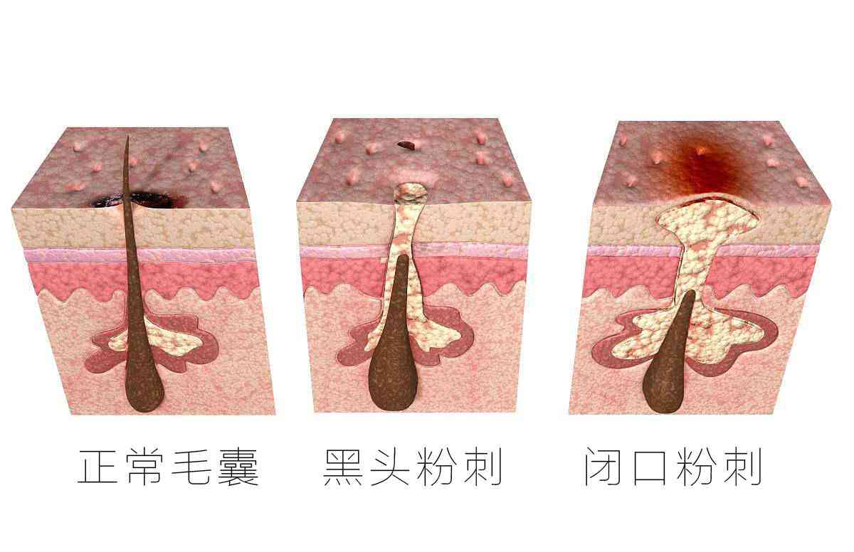 閉口粉刺又叫白頭粉刺,由于皮脂腺分泌的皮脂以及角化異常的角質(zhì)細(xì)胞形成了堵死毛囊出口的“角栓”,但是這個(gè)“角栓”又在毛囊比較深的地方?jīng)]有露出到空氣中,因此不能形成黑頭,而是被薄薄的表皮層給覆蓋了,這就是閉口粉刺的由來(lái)。