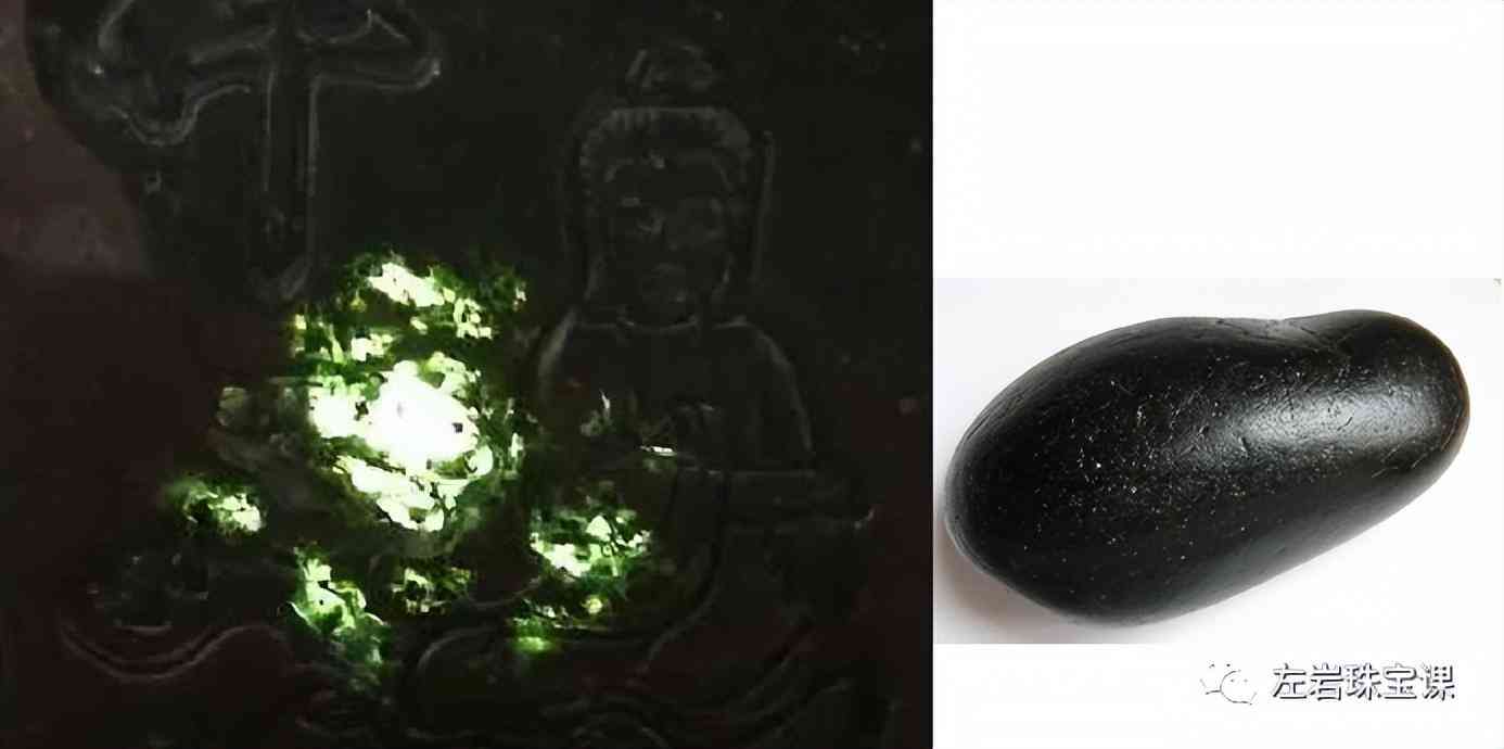用黑色卡瓦石冒充塔青就比較坑了。但是很好分辨,打燈就能看出來(lái)。