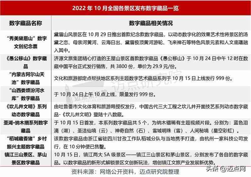數(shù)字藏品創(chuàng)文旅新業(yè)態(tài):10月景區(qū)數(shù)字藏品發(fā)布頻度不減反增,力爭拓展推廣自身影響力的新渠道,為歷史文化積淀深厚的景區(qū)吸引新一代的年輕游客。10月15日,鎮(zhèn)江兩大5A級景區(qū)——鎮(zhèn)江三山景區(qū)和茅山景區(qū),分別發(fā)布了各自的數(shù)字藏品。以數(shù)字藏品的新形式解鎖景區(qū)文創(chuàng)新玩法,增創(chuàng)鎮(zhèn)江文旅產(chǎn)業(yè)發(fā)展新優(yōu)勢。