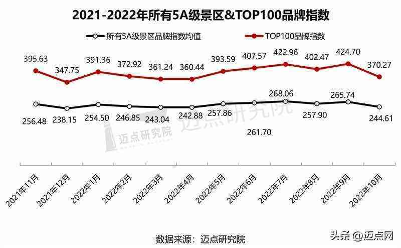 經(jīng)邁點研究院監(jiān)測,10月5A級景區(qū)品牌指數(shù)稍有回落,所有5A級景區(qū)的平均品牌指數(shù)為244.61,環(huán)比下降7.95%;10月100強5A級景區(qū)MBI品牌指數(shù)均值為370.27,環(huán)比下降12.82%。受十一小長假加持以及恰逢賞秋時節(jié),文旅市場活躍,在嚴(yán)格遵守疫情防控的基礎(chǔ)上,各大景區(qū)發(fā)揮運營優(yōu)勢,推出特色主題文化活動迎合市場需求,助力市場復(fù)蘇。