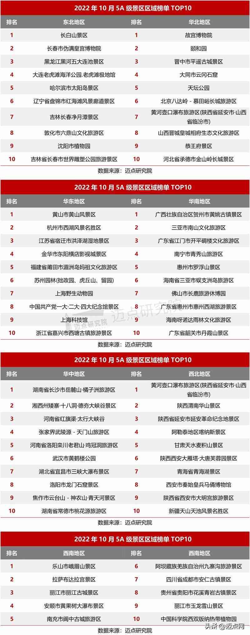 (2)5A級景區(qū)7個區(qū)域細(xì)分榜單TOP10