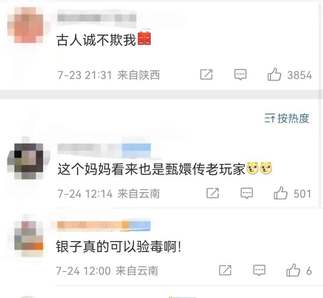 網(wǎng)友們不由地感慨“古人誠不欺我”“銀子真的可以試毒??!”