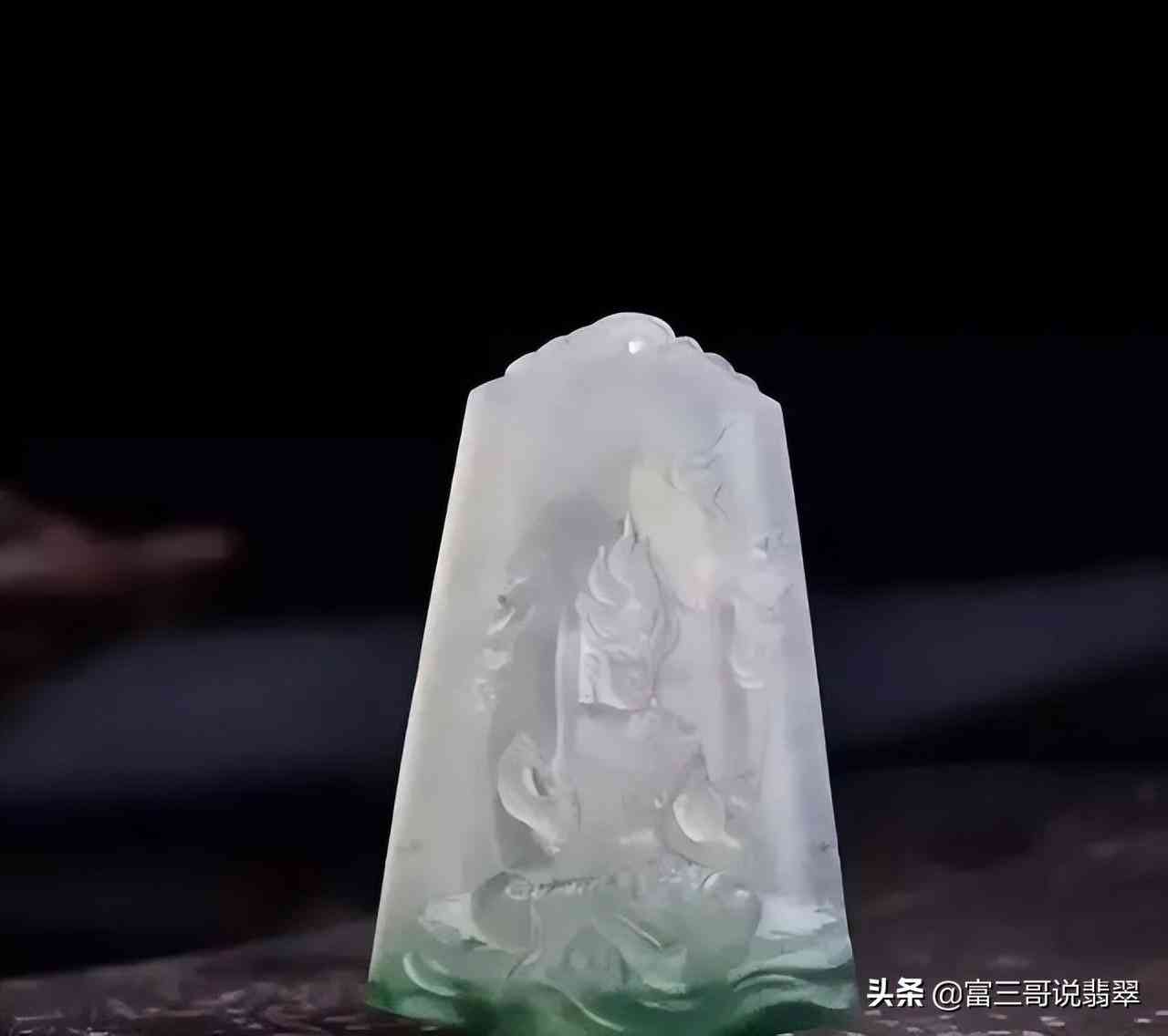 特色地方是邊緣飄綠花,清涼幽靜,翠綠處色澤濃郁,料子肉質(zhì)干凈明亮,通透度高,厚度適中,是做人物主題的好料子。