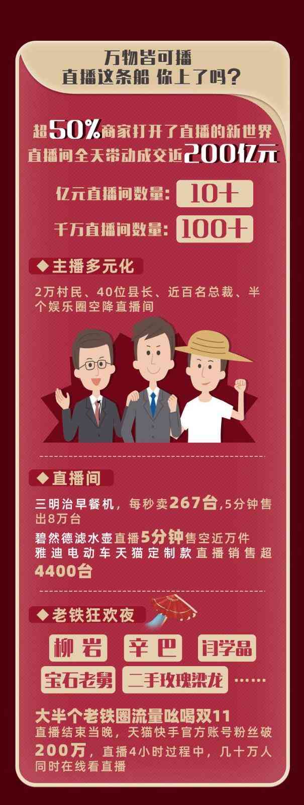 其二,通過直播來觸達(dá)下沉市場且顯示出趨勢。數(shù)據(jù)顯示,今年雙11,共有超過50%的商家開啟了淘寶直播,直播全天成交額近200億元,并誕生了超過10個億元直播間,以及超100個千萬直播間。