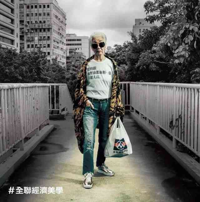 到了2017年,全聯(lián)超市將主視覺(jué)從年輕人換成老年人,且將經(jīng)濟(jì)美學(xué)主張印在了T恤上,摩登的爺爺奶奶也緊追潮流,演繹霸氣時(shí)尚,呈現(xiàn)一種新的時(shí)尚風(fēng)格。傳達(dá)在全聯(lián)不僅年輕人夠酷,老年人同樣是流行。