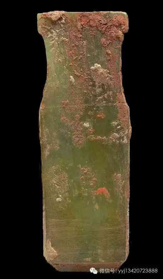 商晚期 小玉棕。青黃玉,略帶半透明,表面未經(jīng)仔細拋光。琢作一外方內(nèi)圓的小玉棕。平素?zé)o紋。寬1.9公分 高4.1公分。