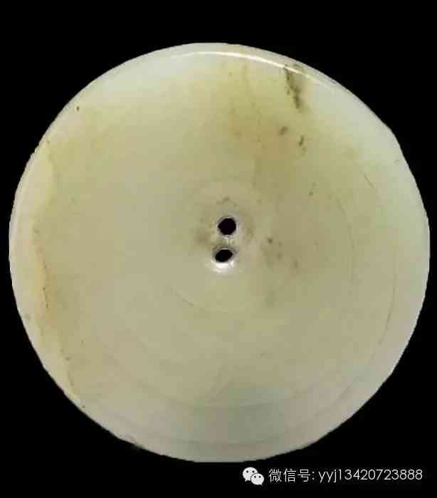 商至西周早期 凸緣璧。草綠泛黑色,似為蛇紋石質(zhì)。圓周不太規(guī)整。徑11.9公分 高2公分。