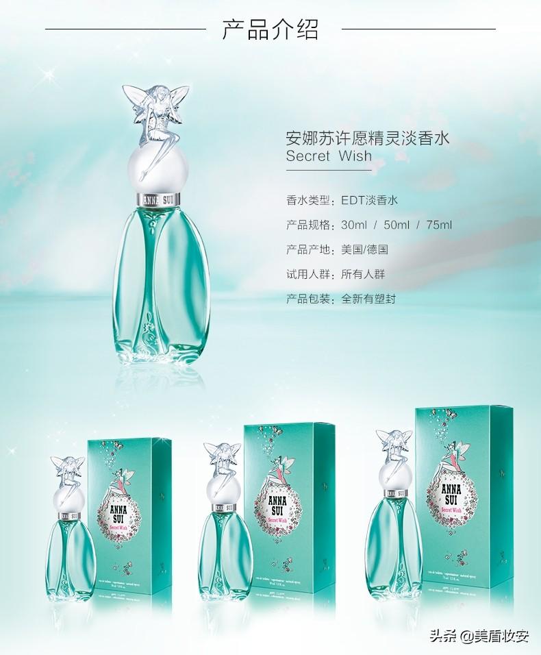 7.安娜蘇許愿精靈女士淡香水,這款是安娜蘇的經(jīng)典款,無(wú)論是顏色還是坐在香水瓶上的許愿精靈,都能讓此款香水的花果味淋漓精致的展現(xiàn)。