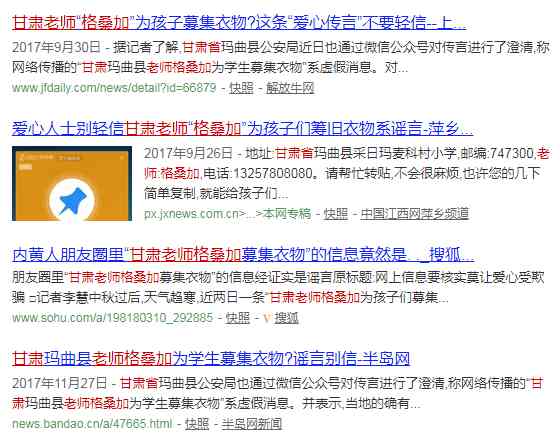導(dǎo)讀: 冷空氣來(lái)了,那個(gè)募捐舊衣服的謠言又來(lái)了……近日,一則以“瑪曲縣老師‘格桑加’口吻為貧困孩子募集衣物”的信息在微博和微信群...