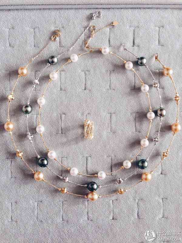 日本的珍珠設(shè)計(jì)也別具匠心,以下這幾條就是我在展會(huì)上的日本珠寶商手里買到的珍珠項(xiàng)鏈(Akoya白珠、南洋金珠、大溪地黑珠),和K金搭配,柔軟度極高。