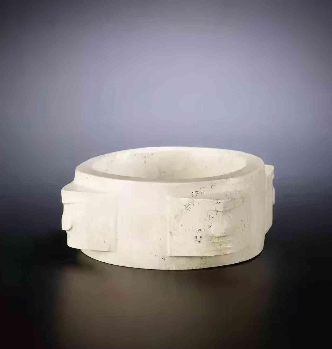 這里就是一件典型的雞骨白玉琮,我們可以看出圖中所呈現(xiàn)出的白非常的干澀,但是它缺少了玉石獨(dú)有的溫潤(rùn)感。