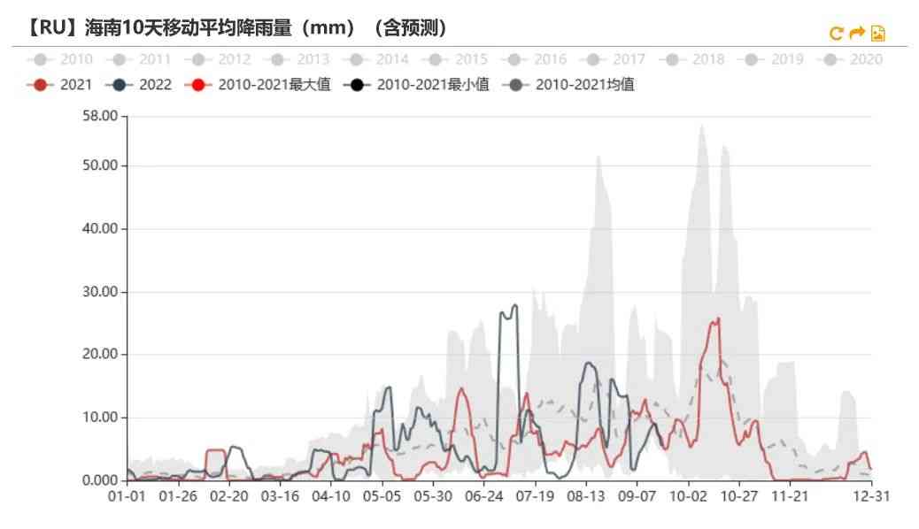 海南流通逐漸恢復,膠水產量增加。據了解,隨著海南疫情逐步得到控制,部分地區(qū)流通貿易得到好轉,另外隨著雨水減少,膠水的產量從之前的1000噸/日左右增多至2000-3000噸/日。海南天氣開始好轉。海南在8月份經歷多雨天氣之后,9月份中上旬日均降雨量預計降至10mm以內,對割膠影響有限。