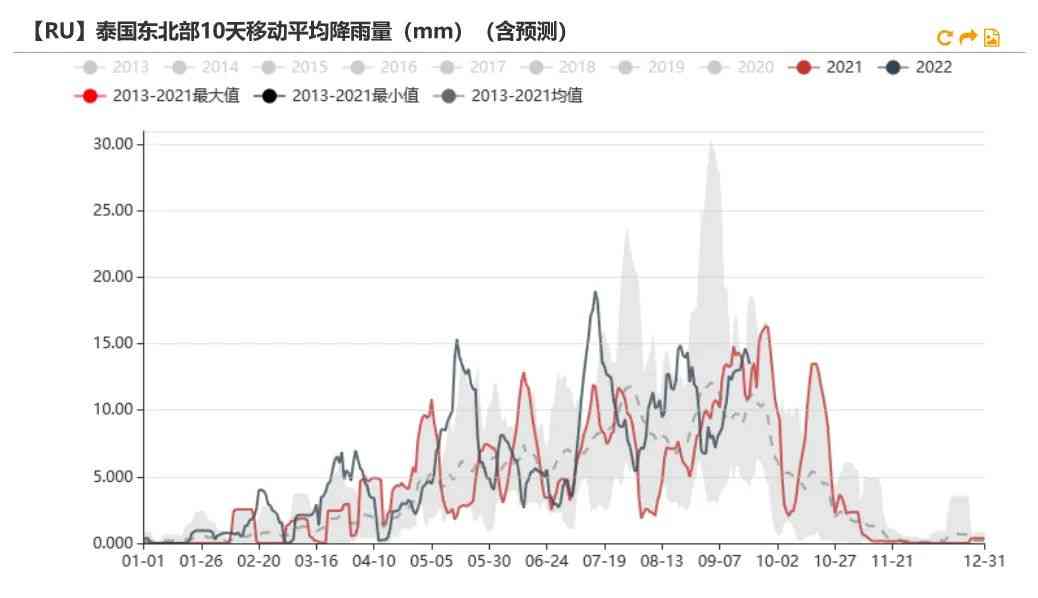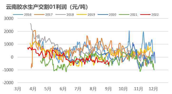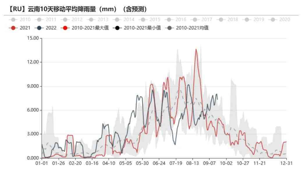 上游利潤情況不佳。盤面下跌后,上游加工利潤持續(xù)下滑,維持低位,從估值來看偏低估。9月上旬云南降雨預計小幅增加。根據路透數據顯示,9月中上旬云南降雨量將小幅增加,或影響割膠。