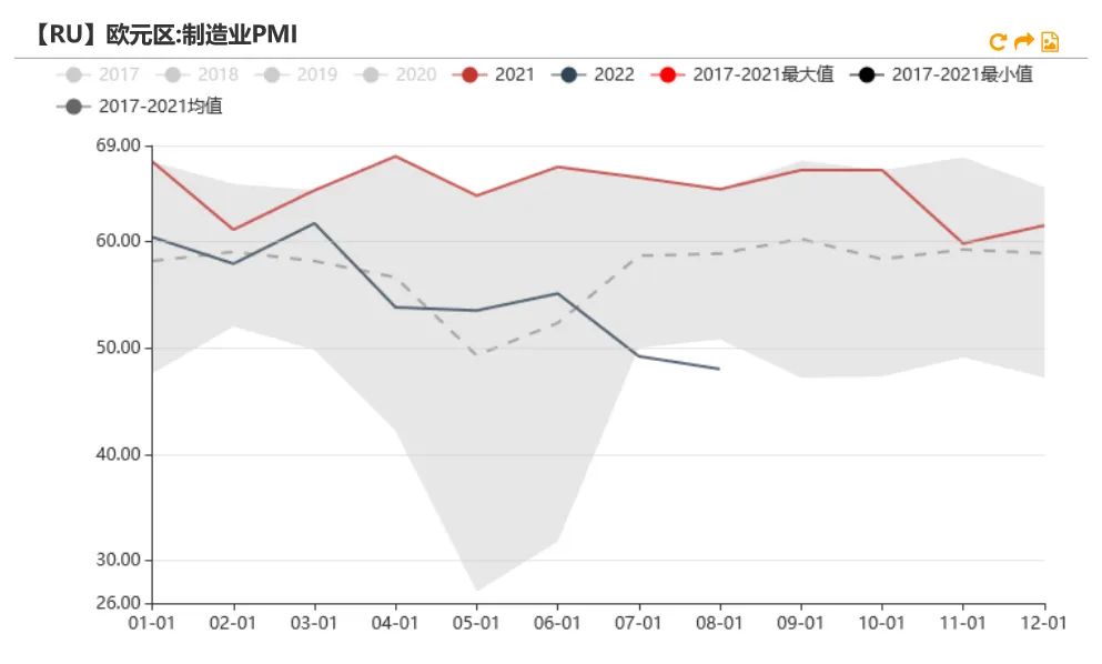 消費信心觸底回升,PMI繼續(xù)下探。歐美消費信心指數均在7月觸底后出現回升,后續(xù)需要關注其回升持續(xù)性;然而8月份美國PMI新訂單與歐元區(qū)制造業(yè)PMI指數均繼續(xù)下探,目前處于50以下。