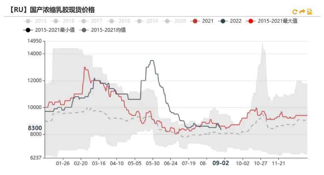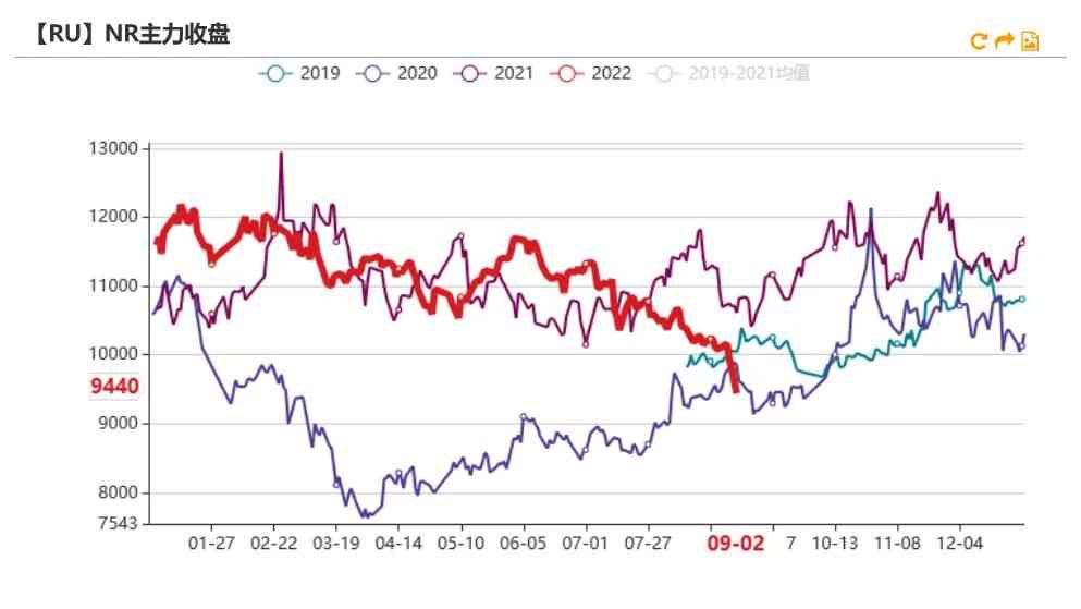 9月2日RU主力收盤價為12280元/噸,較上周下跌390元/噸,環(huán)比下跌3.08%。NR主力收盤價為9440元/噸,較上周下跌660元/噸,環(huán)比下跌6.53%。RU-NR擴大至2840。