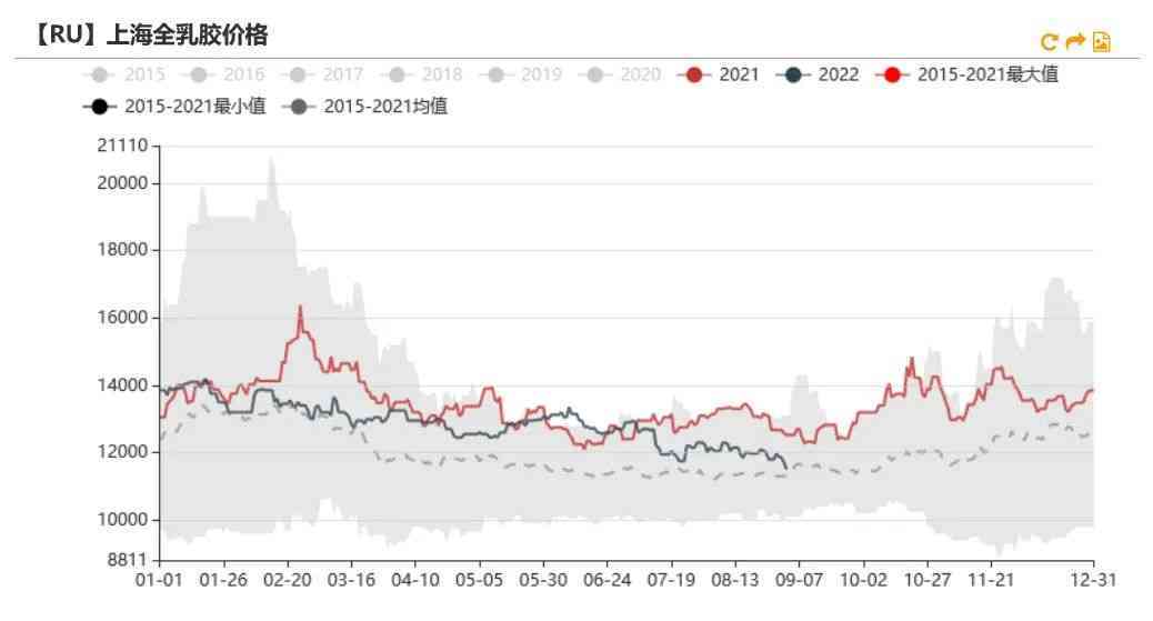 新增倉單略多于去年。根據上期所數據,截至目前,5月開始的RU倉單新增數量為3.45萬噸,略多于去年的2.38萬噸。預估上期所新膠庫存少于去年同期。根據本周公布的倉單到期數量可知,將有21.19萬噸老膠倉單將在11月份進行注銷,而目前RU期貨庫存小計為28.88萬噸,因此有7.69萬噸不會被注銷,而其中有2.6萬噸煙片倉單,因此推測新膠的上期所庫存為5.09萬噸,低于2021年的5.92萬噸。