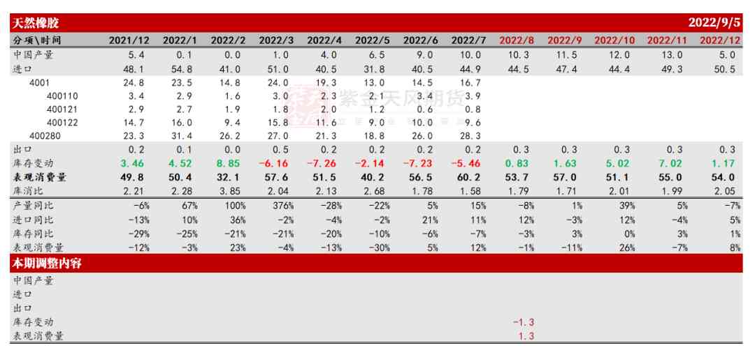 中國天然橡膠月度平衡表