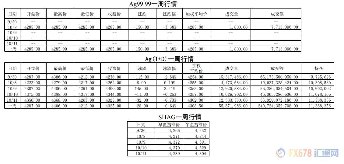 PAg99.99延續(xù)9月的行情,在成交量榜單排名第二,僅次于Ag(T+D),擠掉了黃金數(shù)個月牢牢占據(jù)的第二的位置,其他品種均出現(xiàn)不同程度的成交量萎縮。