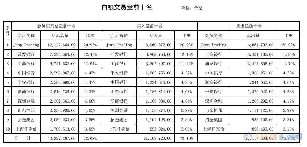 白銀交易方面,量化交易機構(gòu)Jump trading仍以絕對的優(yōu)勢位居榜首。浦發(fā)銀行在成交方面反超工商銀行,成為最偏好白銀的銀行。