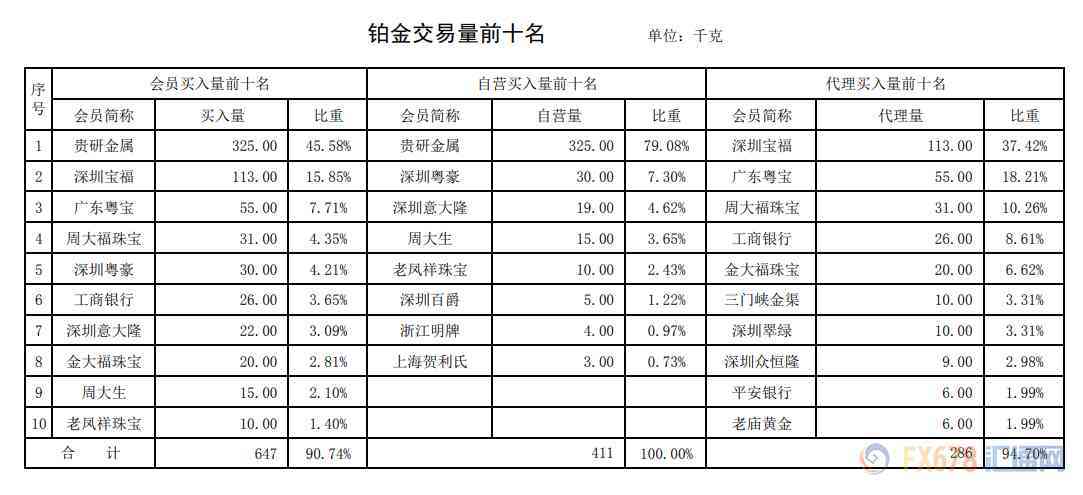 鉑金成交量方面,貴研金屬連續(xù)數(shù)周維持榜首。